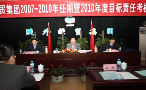 集團公司董事長劉耀華在會上用詳實的數字和完善的資料向省國資委目標考核組匯報了2007-2010年在任期間以及2010年度的經營管理情況的述職報告。會議最后一項進行民主測評以及同集團公司領導班子成員、部分單位、職能部門正職和負責人進行個別談話。
