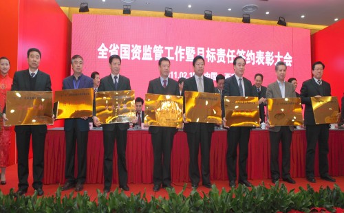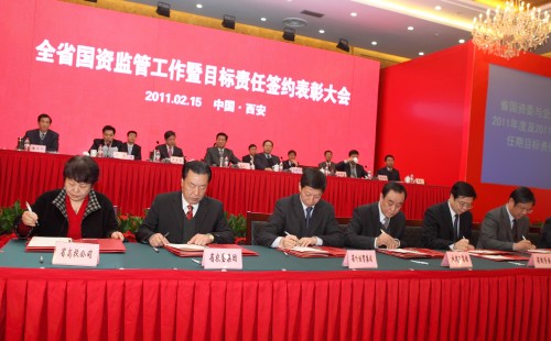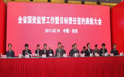2月15日下午,2011年全省國資監(jiān)管工作暨目標(biāo)責(zé)任簽約會(huì)議在陜西省賓館舉行。省長趙正永,省委常委、省委組織部部長李錦斌,省人大常委會(huì)副主任白阿瑩,副省長吳登昌等相關(guān)領(lǐng)導(dǎo)參會(huì)?!笆晃濉逼陂g我省國資委監(jiān)管企業(yè)資產(chǎn)總額由1477億元增加到6969億元,增長371%,所有者權(quán)益由339.9億元增加到2434億元,增長616%,主要經(jīng)濟(jì)指標(biāo)步入全國先進(jìn)行列,位居西部前列。趙正永在講話中首先代表省委、省政府對(duì)“十一五”全省國資監(jiān)管和國有企業(yè)發(fā)展取得的成績給予充分肯定。他要求全省國資監(jiān)管系統(tǒng)和國有企業(yè)進(jìn)一步做強(qiáng)、做優(yōu)、做大國有資本。要不斷探索新國有企業(yè)參與民主建設(shè)的途徑和方式在承擔(dān)社會(huì)責(zé)任方面做出表率,努力實(shí)現(xiàn)企業(yè)與社會(huì)的共贏。