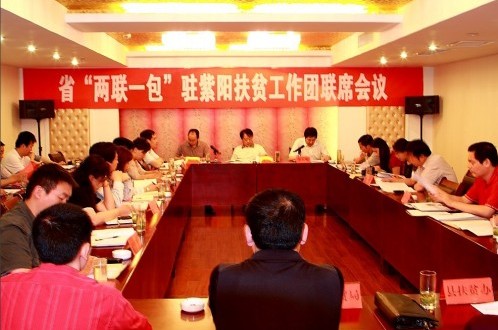 5月25日,省級“兩聯(lián)一包”扶貧駐紫陽縣扶貧團(tuán)聯(lián)席會議在紫陽縣舉行,各參扶單位派員參加,牽頭單位陜西省工業(yè)和信息化廳副廳長、廳機(jī)關(guān)黨委書記周建到會。集團(tuán)公司黨群工作部主任王小龍和高磊參加了會議。