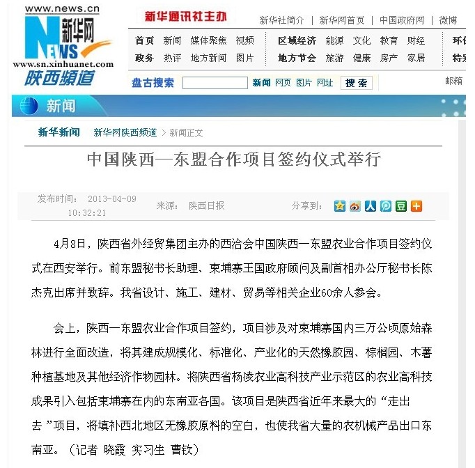 新華網(wǎng)轉(zhuǎn)載:我集團(tuán)承辦的中國陜西—東盟合作項(xiàng)目簽約儀式舉行