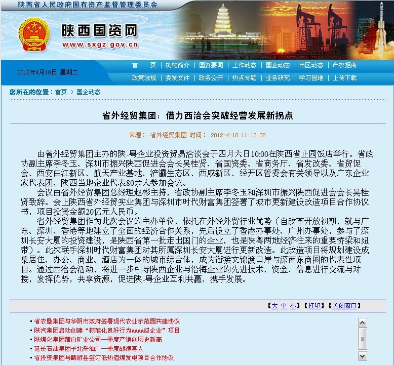省國資委網(wǎng)站登載:省外經(jīng)貿(mào)集團(tuán)借力西洽會(huì)突破經(jīng)營發(fā)展新拐點(diǎn)