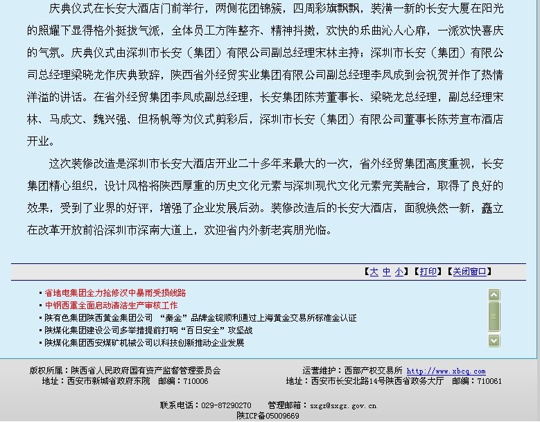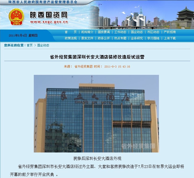 省國資網(wǎng)站登載我集團深圳長安大酒店裝修后試運營報道