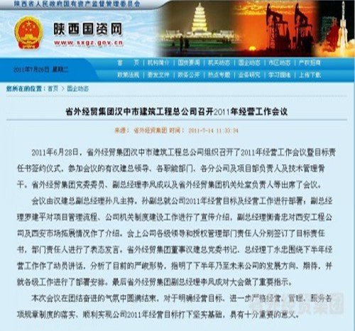 省國(guó)資委網(wǎng)站登載集團(tuán)漢中市建筑工程總公司召開2011經(jīng)營(yíng)工作會(huì)議