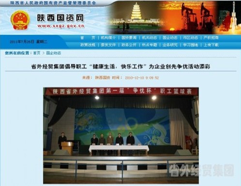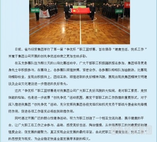 省國資委網(wǎng)站登載我集團公司第一屆”爭優(yōu)杯“職工籃球賽情況