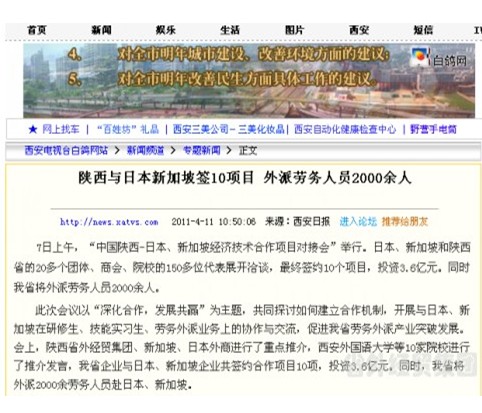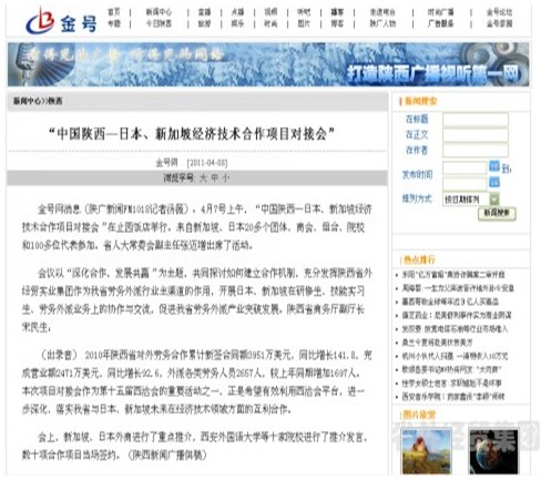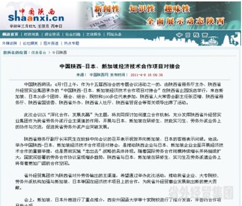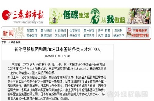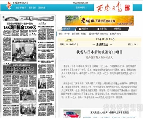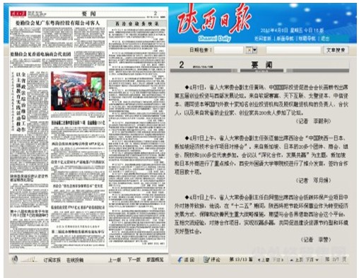 西安各大主流媒體報道集團公司西洽會期間承辦中國陜西-日本、新加坡經(jīng)濟技術合作項目對接會”情況