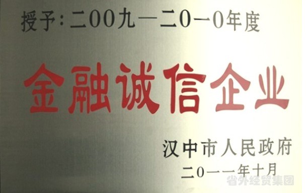 集團(tuán)所屬漢中市建筑工程總公司被評(píng)為“金融誠(chéng)信企業(yè)”