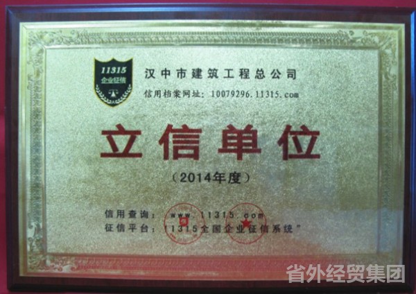 近期漢中市開展信用體系建設(shè)、完善企業(yè)信用檔案工作。集團(tuán)所屬漢中市建筑工程總公司被授予“11315全國(guó)企業(yè)征信系統(tǒng)立信單位”。