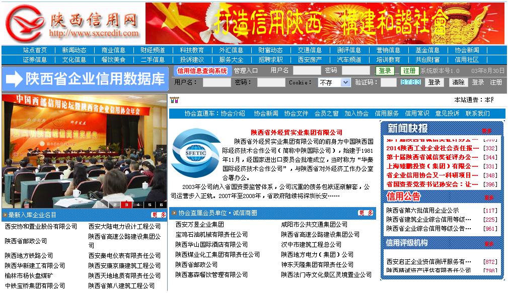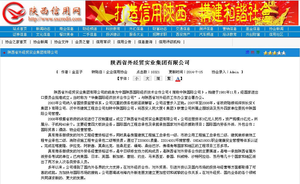 陜西省外經(jīng)貿(mào)實(shí)業(yè)集團(tuán)有限公司榮登陜西信用網(wǎng)首頁(yè)