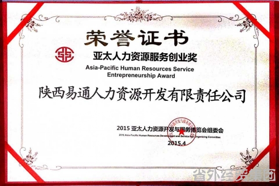 易通公司榮獲“亞太人力資源服務創(chuàng)業(yè)獎”