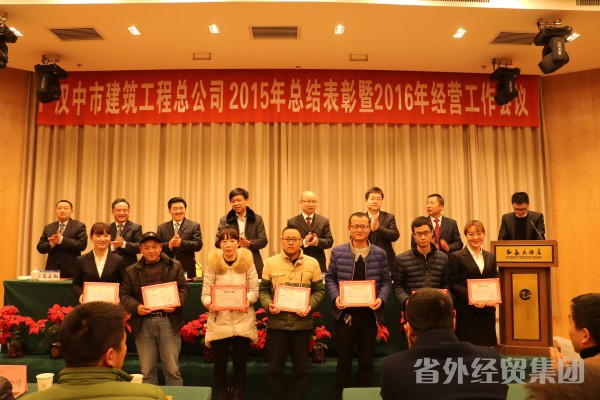 2016年1月29日,漢中市建筑工程總公司召開2015年度總結(jié)表彰暨2016年經(jīng)營工作會議。漢建總公司領(lǐng)導班子成員,各職能部門負責人、成員、分公司、項目部負責人及成員,以及陜西晗瑞有限責任公司和漢江混凝土公司領(lǐng)導和同志共計120余人參加會議。陜西省外經(jīng)貿(mào)集團公司黨委委員、董事丁永忠同志,集團紀委副書記、監(jiān)察室主任呂軍同志蒞臨大會。