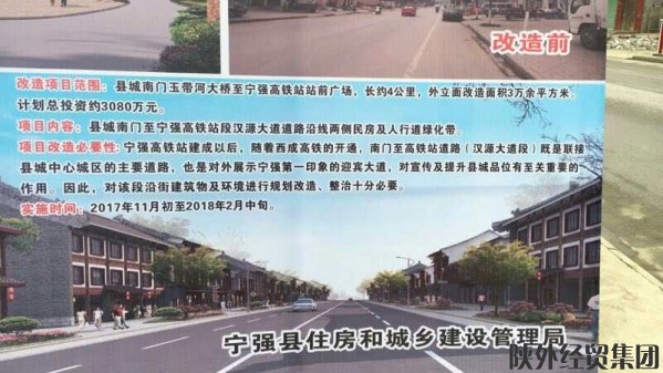 漢建總公司承建的寧強(qiáng)EPC古建項(xiàng)目?jī)?nèi)容包括寧強(qiáng)縣城南門至寧強(qiáng)高鐵站段漢源大道道路沿線兩側(cè)民房及人行道綠化帶,長(zhǎng)約4公里,外立面改造面積3萬余平方米,計(jì)劃總投資約3080萬元,項(xiàng)目已于今年11月初施工,計(jì)劃于2018年2月中旬完工。