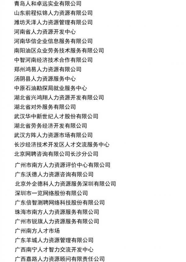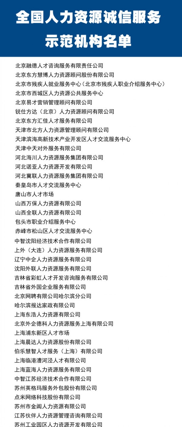 附:128家“全國人力資源誠信服務(wù)示范機構(gòu)”名單
