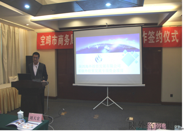 簽約儀式由寶雞市商務(wù)局對外貿(mào)易管理科王衍奇科長主持,寶雞市商務(wù)局局長劉天宏與陜海投公司董事長丁永忠簽署了戰(zhàn)略合作協(xié)議,寶雞市商務(wù)局副局長巨緒昌發(fā)表了熱情洋溢的致辭,對陜海投公司在省級外經(jīng)貿(mào)專項(xiàng)資金“撥改投”業(yè)務(wù)中對寶雞外經(jīng)貿(mào)企業(yè)的支持給予充分肯定,前期雙方也經(jīng)過了多次的溝通洽談,才促成了本次簽約儀式的成功舉行,同時(shí)也表示簽約只是一個(gè)開始,今后將會(huì)組織更加頻繁的對接會(huì),將所轄區(qū)域內(nèi)的外經(jīng)貿(mào)企業(yè)組織到一起,進(jìn)行針對性的培訓(xùn),助力企業(yè)解決“走出去”及融資渠道等問題。