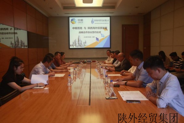 雙方座談完畢后,陜西海外投資發(fā)展有限公司與中糧置地西安公司正式簽訂戰(zhàn)略合作協議。