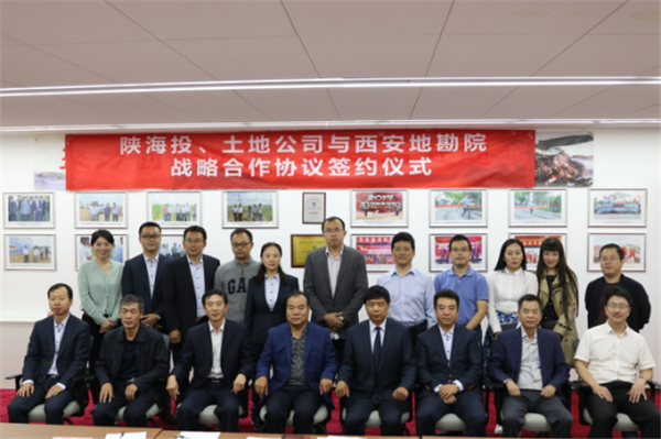 2018年9月28日周五上午10:00,陜西外經(jīng)貿(mào)土地整理開發(fā)工程有限公司、陜西海外投資發(fā)展有限公司與西安地質(zhì)礦產(chǎn)勘查開發(fā)院有限公司,三方戰(zhàn)略合作簽約儀式在陜西外經(jīng)貿(mào)土地整理開發(fā)工程有限公司會議室隆重舉行,陜西外經(jīng)貿(mào)土地整理開發(fā)工程有限公司及陜西海外投資發(fā)展有限公司董事長丁永忠、土地公司總經(jīng)理唐李、陜海投公司總經(jīng)理劉軍、西安地質(zhì)礦產(chǎn)勘查開發(fā)院院長王戰(zhàn)社、副院長鄒文良及三方相關(guān)部門負責(zé)人共30人共同見證并進行了本次簽約儀式。