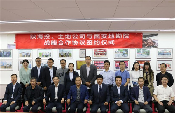 2018年9月28日周五上午10:00,陜西外經(jīng)貿(mào)土地整理開發(fā)工程有限公司、陜西海外投資發(fā)展有限公司與西安地質(zhì)礦產(chǎn)勘查開發(fā)院有限公司,三方戰(zhàn)略合作簽約儀式在陜西外經(jīng)貿(mào)土地整理開發(fā)工程有限公司會議室隆重舉行,陜西外經(jīng)貿(mào)土地整理開發(fā)工程有限公司及陜西海外投資發(fā)展有限公司董事長丁永忠、土地公司總經(jīng)理唐李、陜海投公司總經(jīng)理劉軍、西安地質(zhì)礦產(chǎn)勘查開發(fā)院院長王戰(zhàn)社、副院長鄒文良及三方相關部門負責人共30人共同見證并進行了本次簽約儀式。