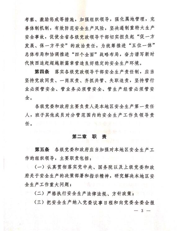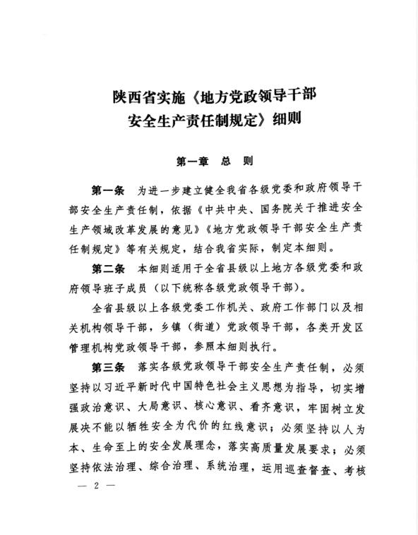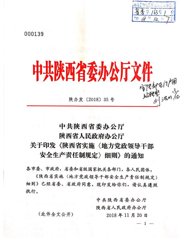 中共陜西省委辦公廳 陜西省人民政府關于印發(fā)《陜西省實施〈地方政府領導干部安全生產責任制規(guī)定〉細則》的通知