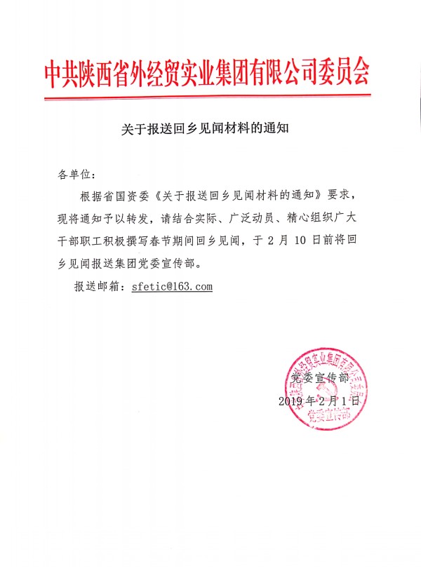 關(guān)于報(bào)送回鄉(xiāng)見聞材料的通知