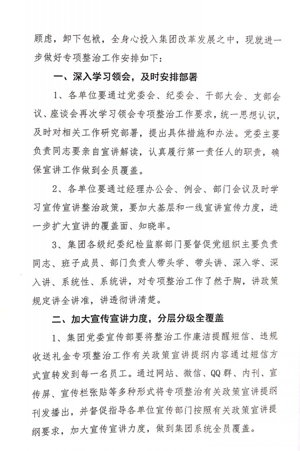 關(guān)于進一步做好違規(guī)收送禮金專項整治工作安排的通知