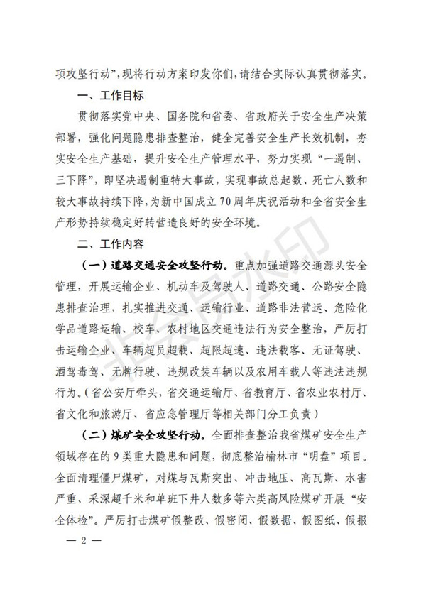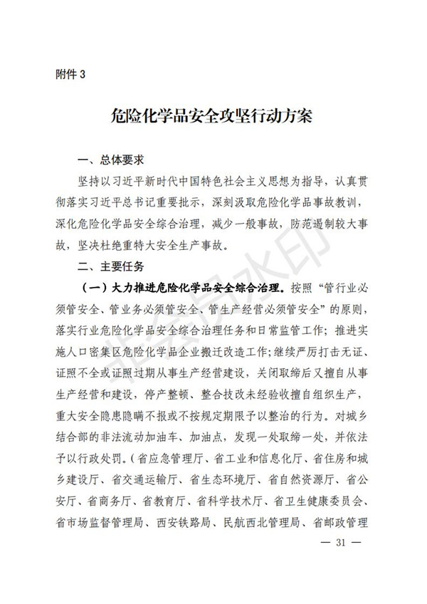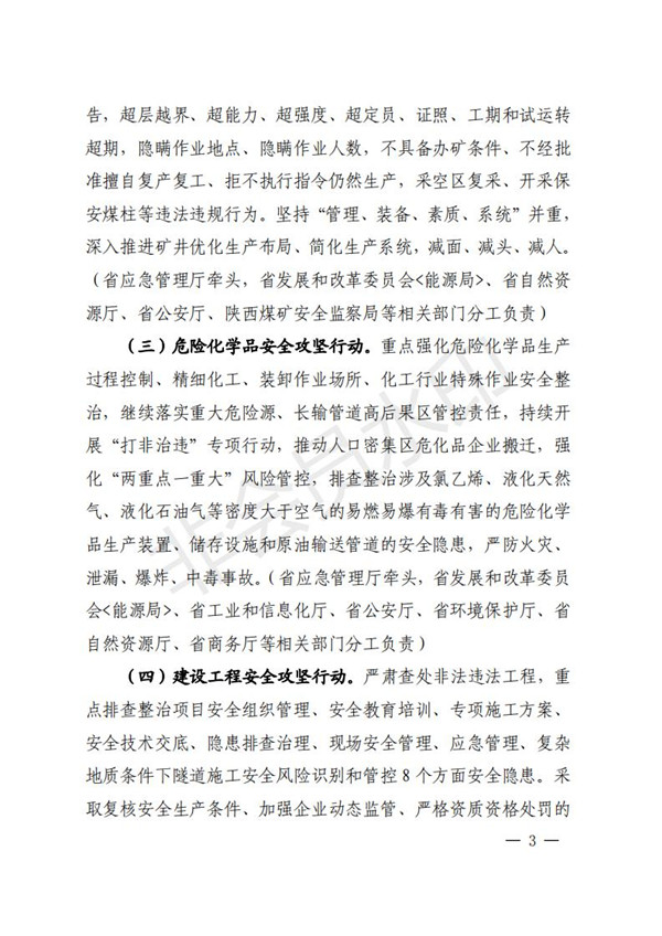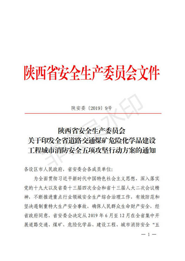 陜西省安全生產(chǎn)委員會關(guān)于印發(fā)全省道路交通煤礦危險化學(xué)品建設(shè)工程城市消防安全五項攻堅行動方案的通知