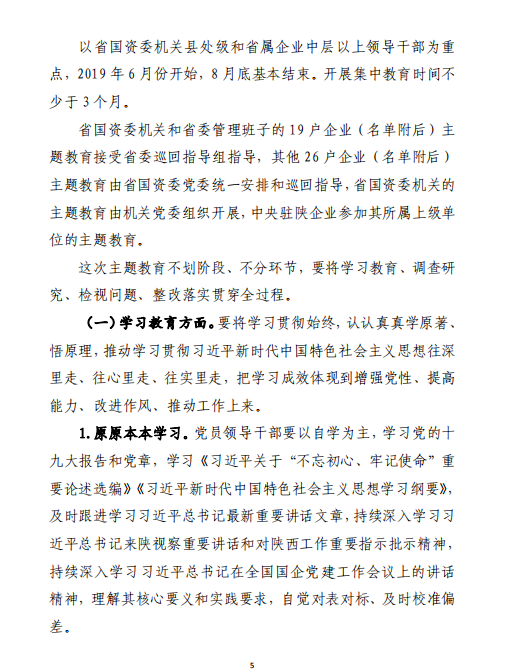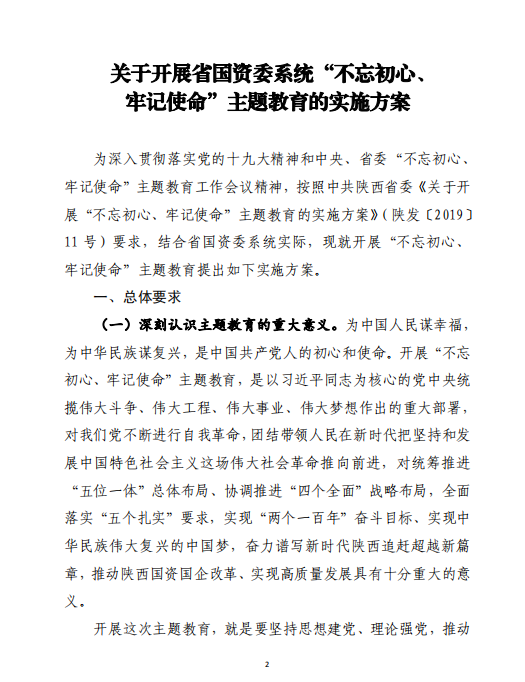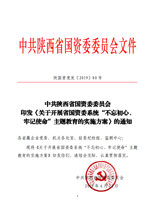 中共陜西省國資委委員會印發(fā)《關(guān)于開展省國資委系統(tǒng)“不忘初心、牢記使命”主題教育的實施方案》的通知