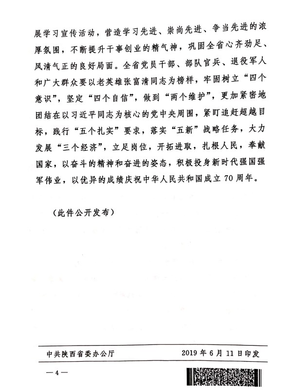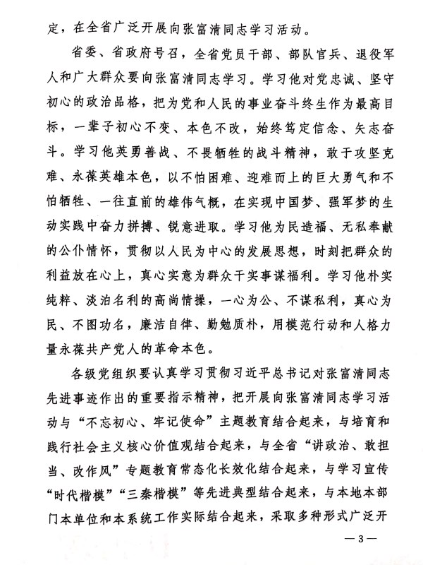 現(xiàn)將《中共陜西省委 陜西省人民政府關(guān)于開展向張福清同志學(xué)習(xí)活動(dòng)的決定》轉(zhuǎn)發(fā)你們,請(qǐng)各單位結(jié)合實(shí)際,積極開展學(xué)習(xí),將本單位典型先進(jìn)人物進(jìn)行上報(bào),申報(bào)材料報(bào)集團(tuán)公司黨委宣傳部。