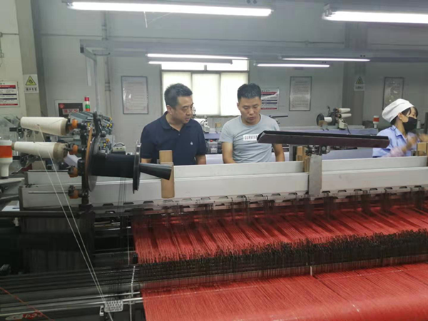 劉軍一行還考察了工廠原料車間和生產(chǎn)車間,了解了原料的備貨、制絨工藝、粗紡及精紡、針織等工藝和設(shè)備及出口產(chǎn)品的備貨情況。