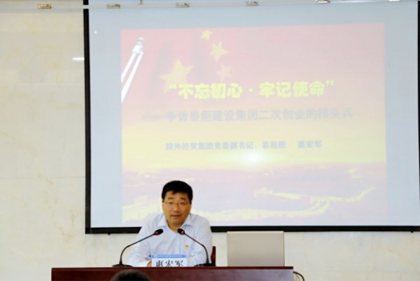 為進(jìn)一步推動(dòng)“不忘初心、牢記使命”主題教育的深入開(kāi)展,根據(jù)集團(tuán)黨委關(guān)于《開(kāi)展“不忘初心、牢記使命”主題教育的實(shí)施方案》工作部署安排,7月19日上午,陜外經(jīng)貿(mào)集團(tuán)黨委副書(shū)記、總經(jīng)理惠宏軍為公司黨員干部職工講了一堂題為“不忘初心、牢記使命---爭(zhēng)做泰烜建設(shè)集團(tuán)二次創(chuàng)業(yè)的排頭兵”的專(zhuān)題黨課。集團(tuán)機(jī)關(guān)黨委書(shū)記、人力資源部部長(zhǎng)呂軍 ,集團(tuán)審計(jì)部副部長(zhǎng)毛志福,泰烜建設(shè)公司領(lǐng)導(dǎo)班子、子公司班子成員、各黨支部黨員及公司機(jī)關(guān)全體工作人員共70余人參加了黨課學(xué)習(xí)。