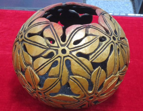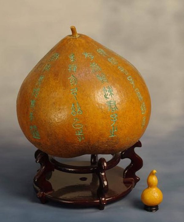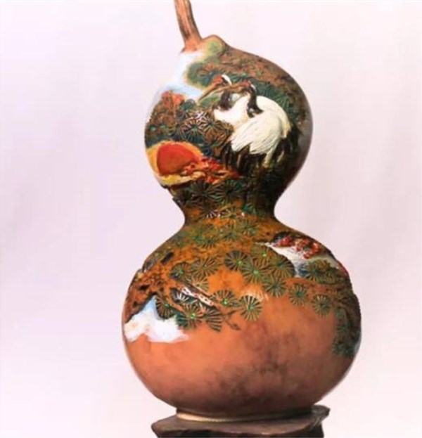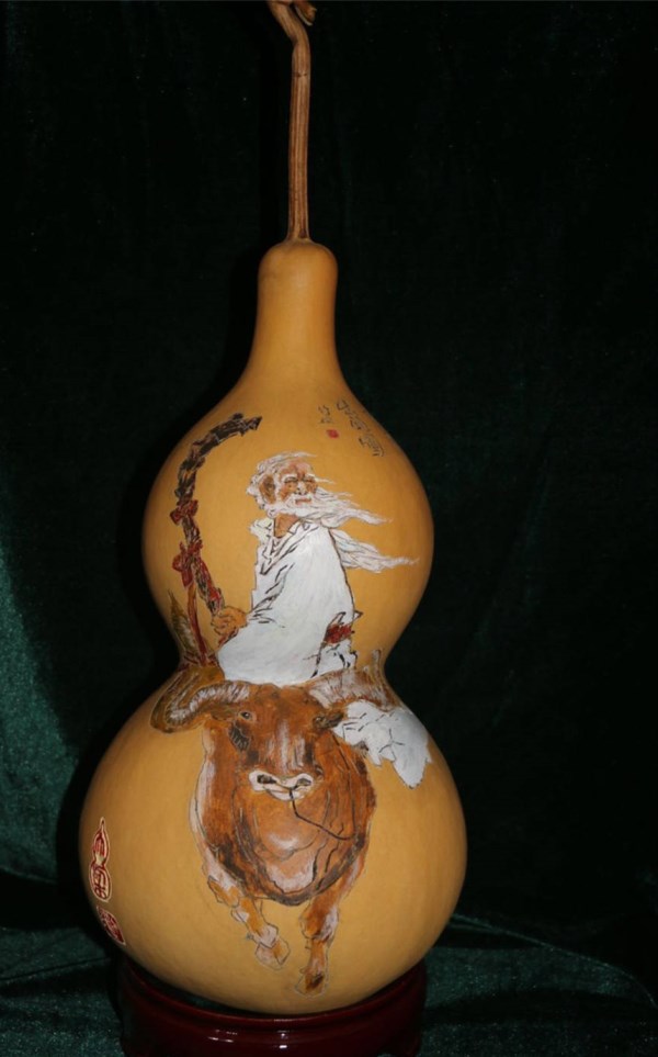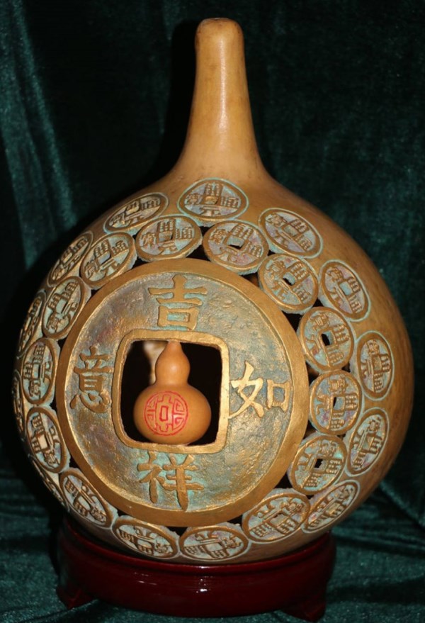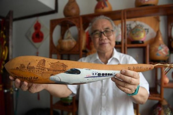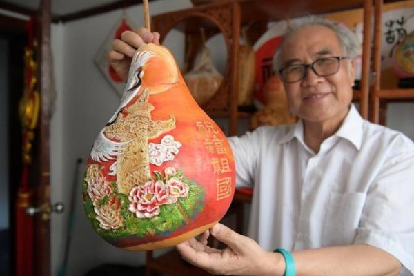 在喜迎新中國成立70周年日子里,梁平安把對祖國的祝福在葫蘆上表現(xiàn)出來,祝祖國繁榮富強,人民幸福安康。